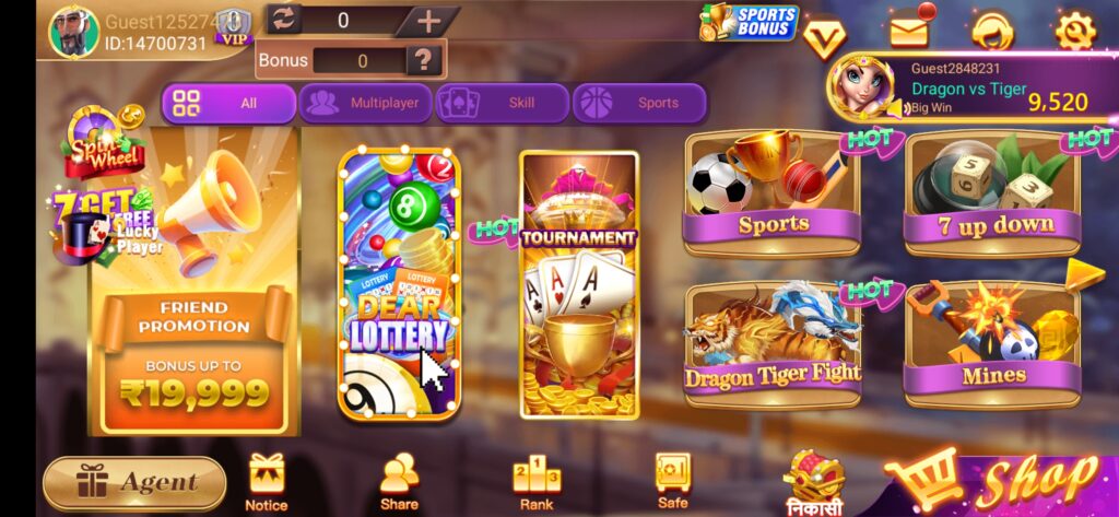 Friends, after registering your mobile number, the home page of this game will look something like this. In this game, you will get more than 20 plus games, out of which you can easily download and play any of them and by using your brain, you can earn up to thousands of rupees daily from this game. And friends, this game. Many rummy players are earning lakhs of rupees, so what are you waiting for, you also go and download this game, play it and earn and by sharing it with your friends, you can earn a free bonus of ₹ 100 from every friend as a referral bonus.