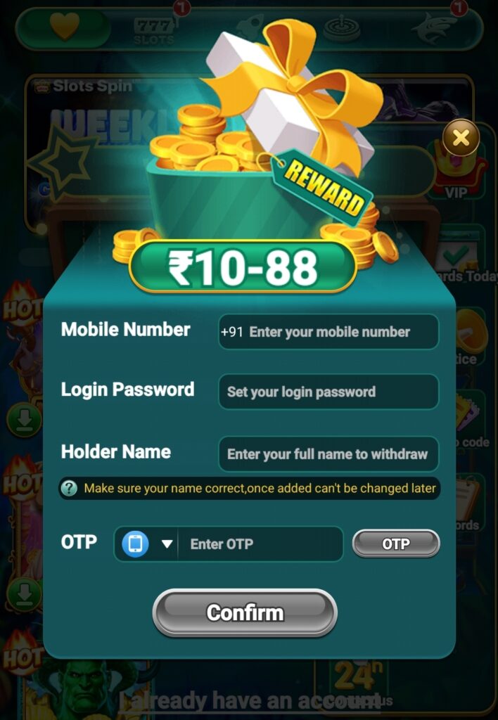 Friends, to register your mobile number in “INR Rummy” game. First of all you have to enter 10 digits of your mobile number, after that you have to enter a strong password, after that you have to enter your name, after that you have to click on the OTP button. Click on your mobile number through uono company OTP will be sent, you have to confirm it by entering the OTP.