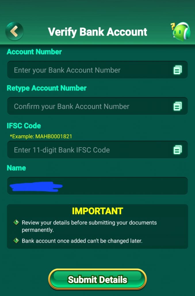To withdraw your money from Okrummy game, first of all you have to fill your account details.